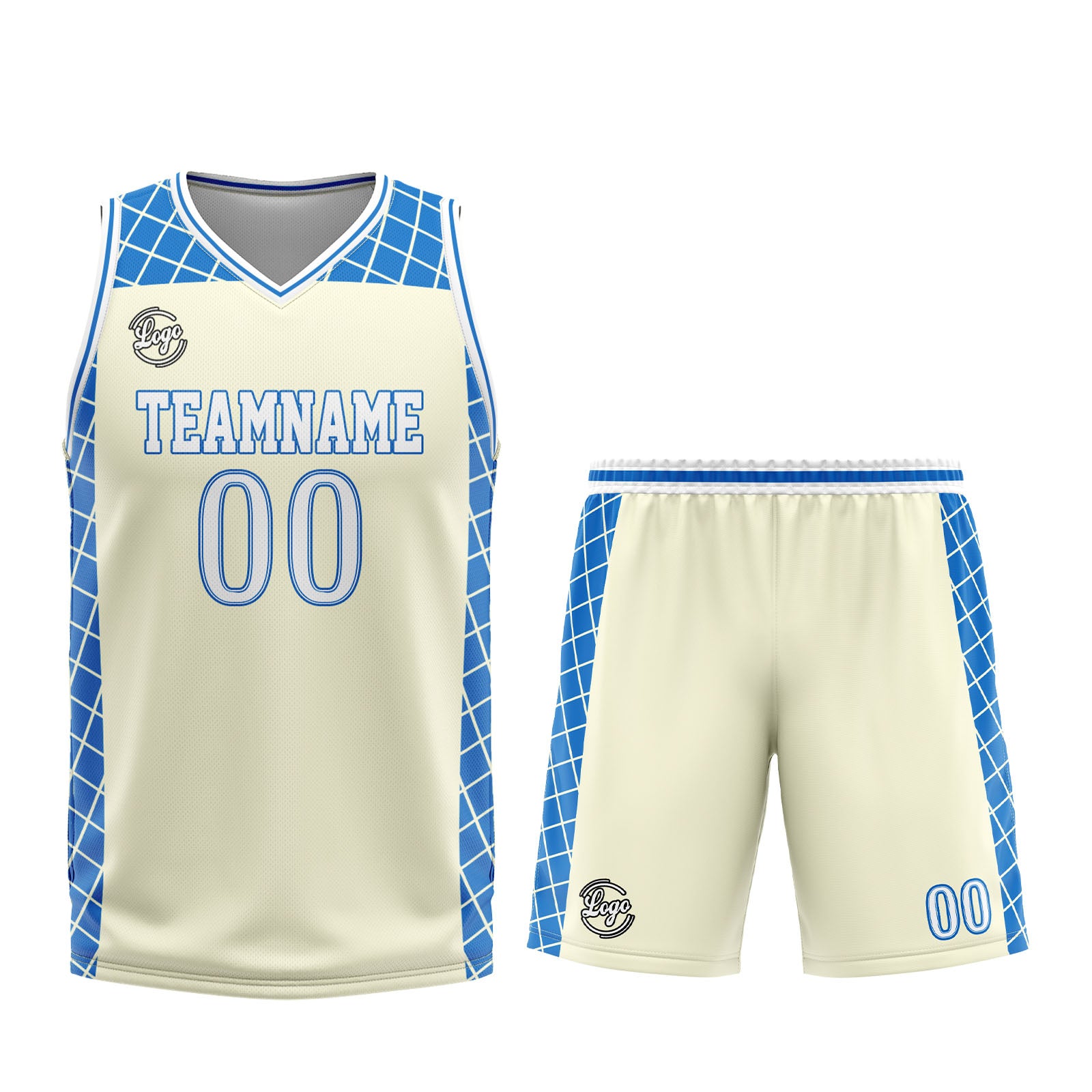 Custom Cream Blue Basketball Jersey Uniform Suit Printed Your Logo Name Number
