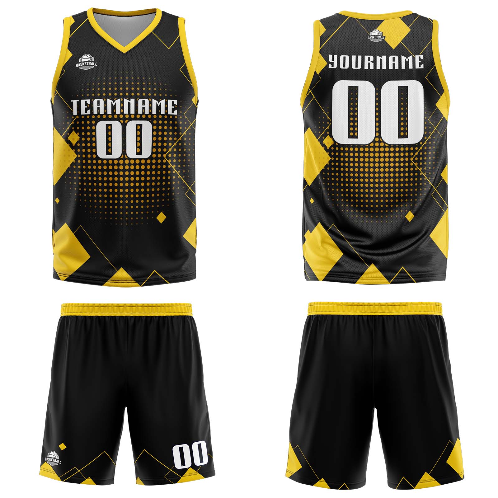 Custom Geometry Yellow Basketball Jersey Uniform Suit Printed Your Logo Name Number