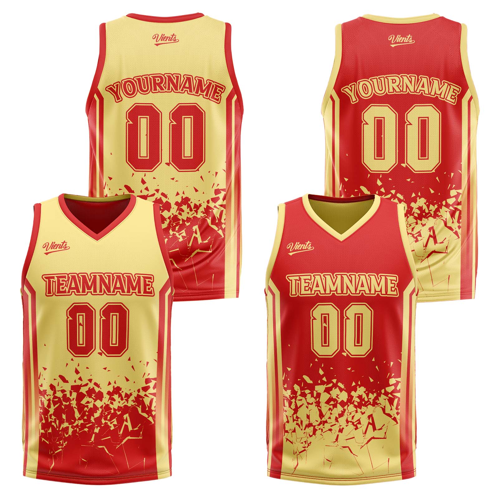 Custom Red Yellow Reversible Basketball Suit for Adults and Kids Personalized Jersey